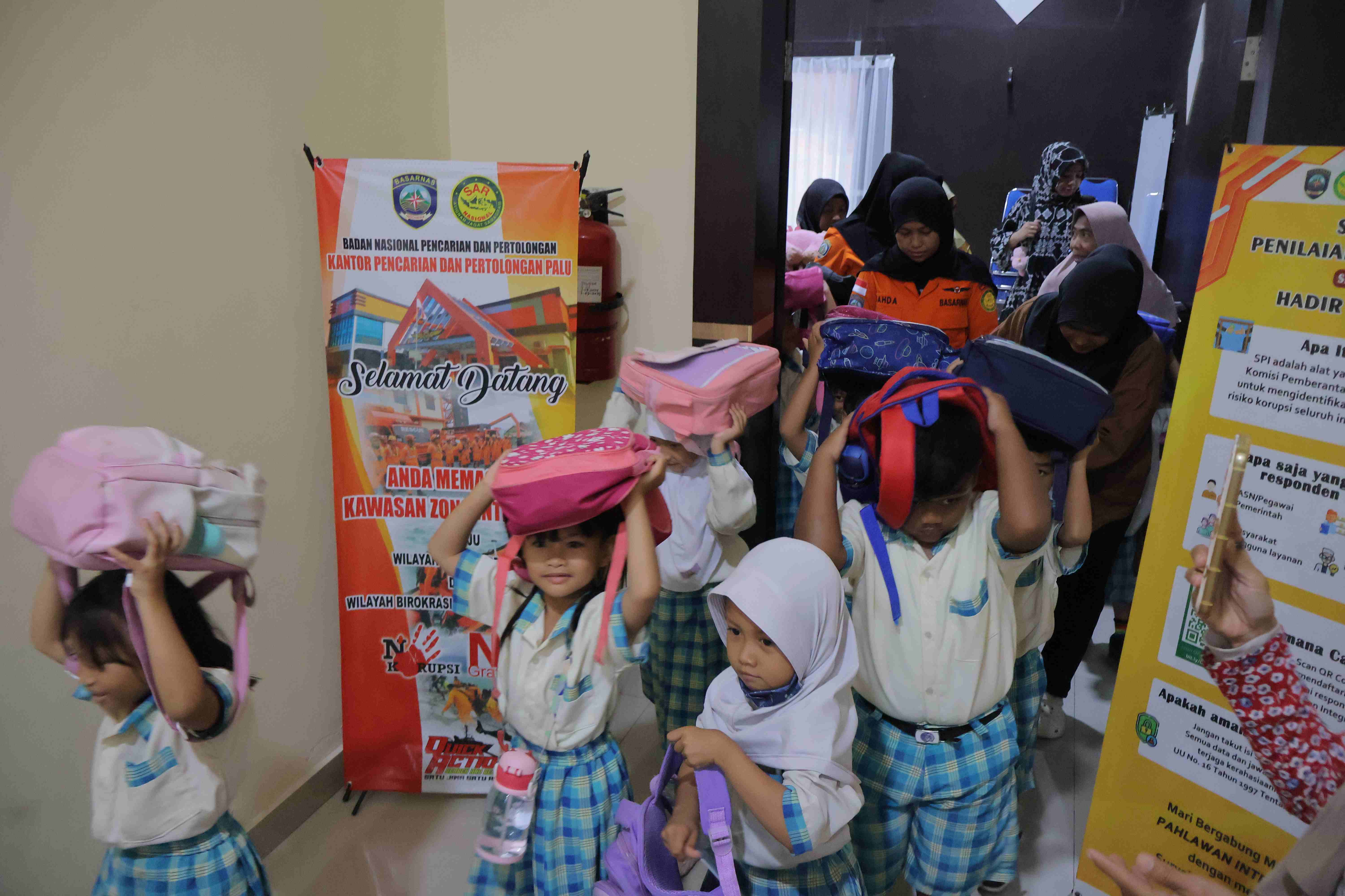 Anak Didik Yayasan Ustaka Ria Belajar Mitigasi Bencana di Kantor Pencarian dan Pertolongan Palu