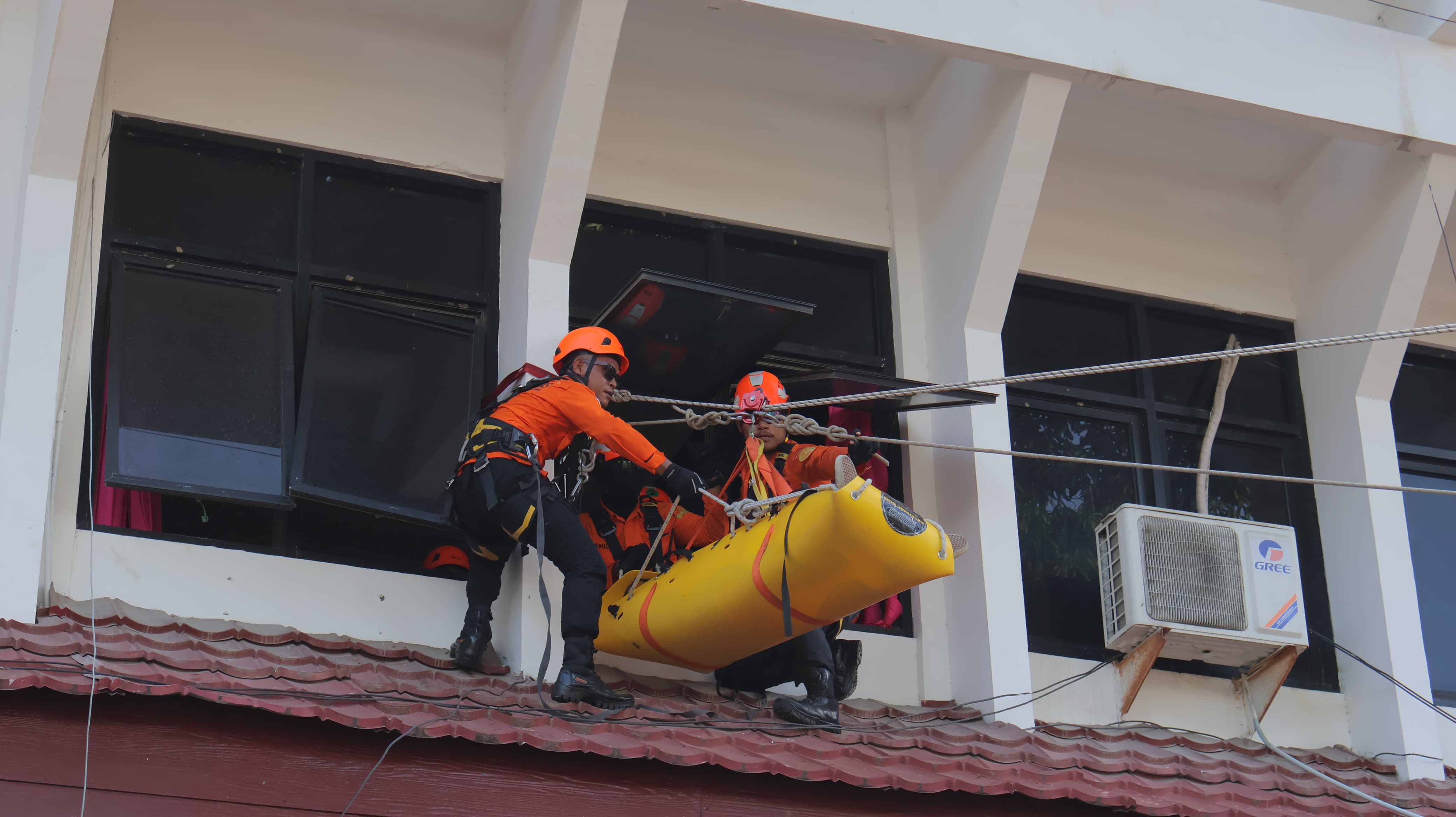 Kantor Pencarian dan Pertolongan Palu (Basarnas) turut berpartisipasi aktif dengan mengerahkan 12 personel. Dalam simulasi, personel Basarnas mengevakuasi korban yang terjebak di lantai atas gedung menggunakan sistem tyrolean (evakuasi menggunakan tali dari ketinggian). Sementara itu, korban lainnya dievakuasi menggunakan tandu bersama unsur gabungan seperti TNI, Polri, BNPB, BPBD, Damkar, Satpol PP, RAPI, PMI, Tagana, Dinas Perhubungan, BMKG, serta PSC 119 Nagasima Palu.
