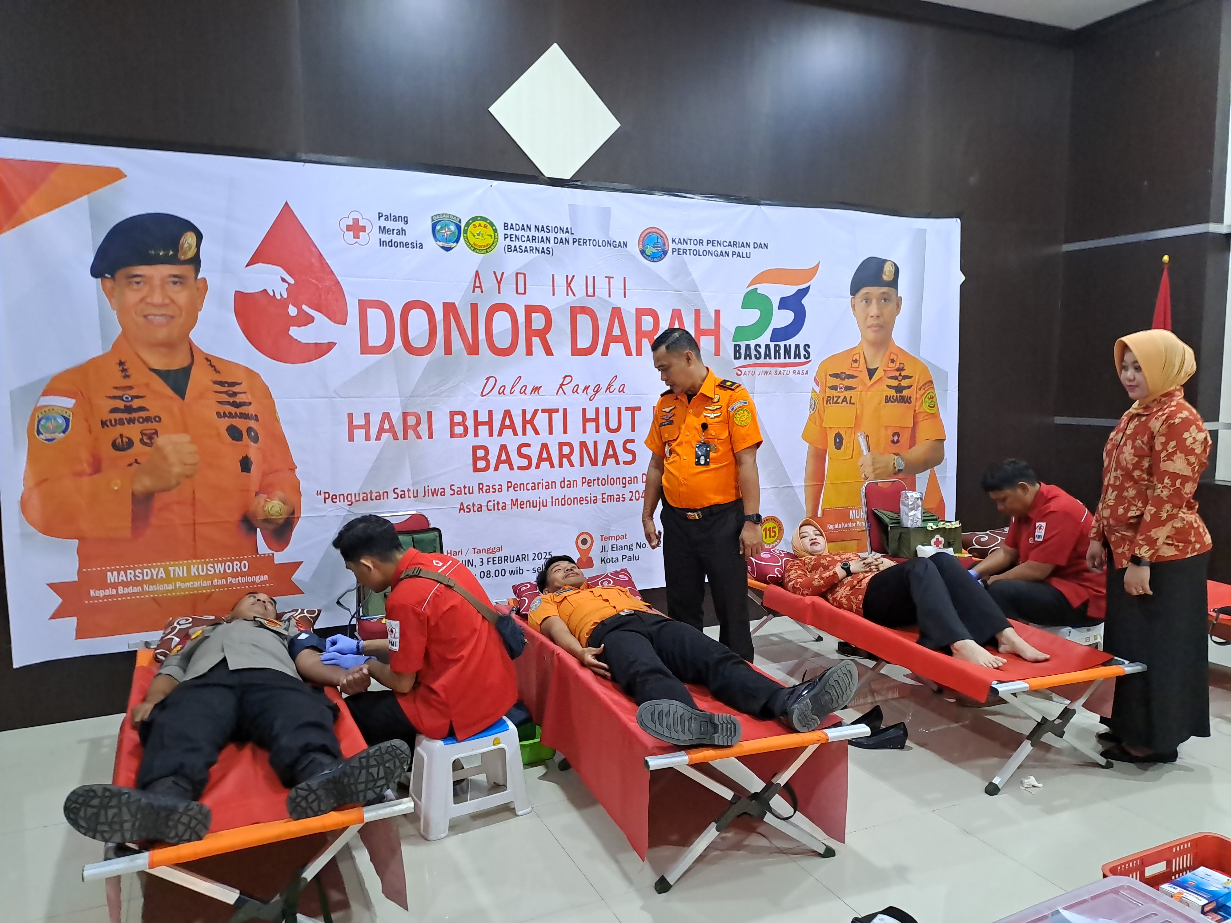 Palu-Sebanyak 55 kantong darah terkumpul dalam kegiatan aksi donor darah dalam rangka menyambut Hari Ulang Tahun Basarnas yang ke-53 tahun. Senin (3/2/2025) di Kantor Pencarian dan Pertolongan Palu.