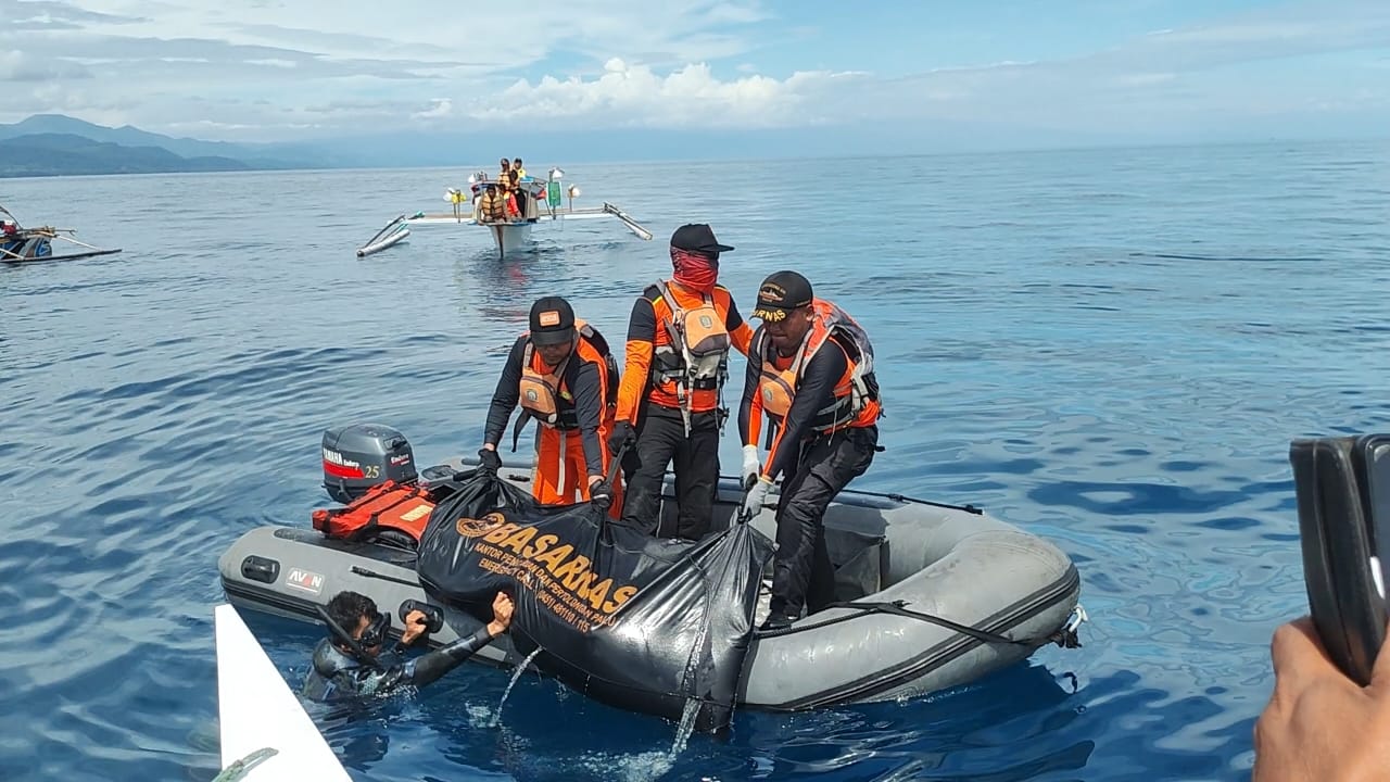 Tim SAR gabungan yang melakukan pencarian dari pagi pukul 07.00 wita mendapatkan informasi dari nelayan yang melihat jasad korban. Tim SAR gabungan selanjutnya melakukan evakuasi dengan memasukkan jasad korban ke kantong jenazah.
