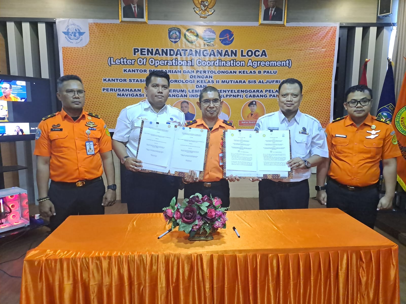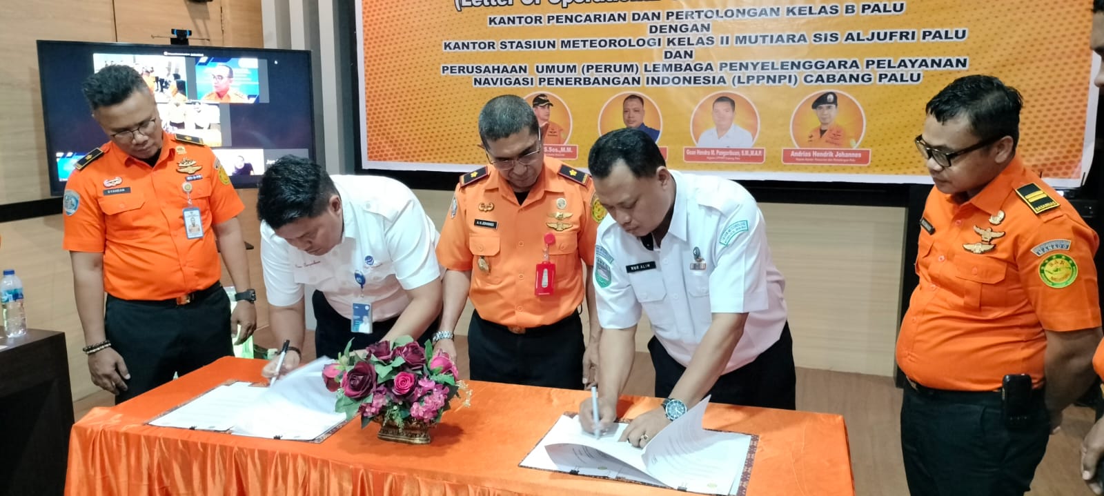 Penandatanganan Loka antara Kantor Pencarian dan Pertolongan Palu dengan BMKG Palu dan Airnav Cabang Palu